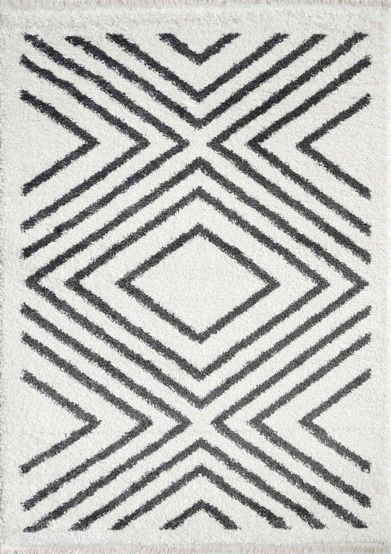 Pehmeänukkainen kuvioitu Decoforia Sofi Deco nukkamatto hapsuilla olohuoneeseen tai makuuhuoneeseen. Pehmeä nukkamatto on ihana sängynvierusmatto makuuhuoneeseen.