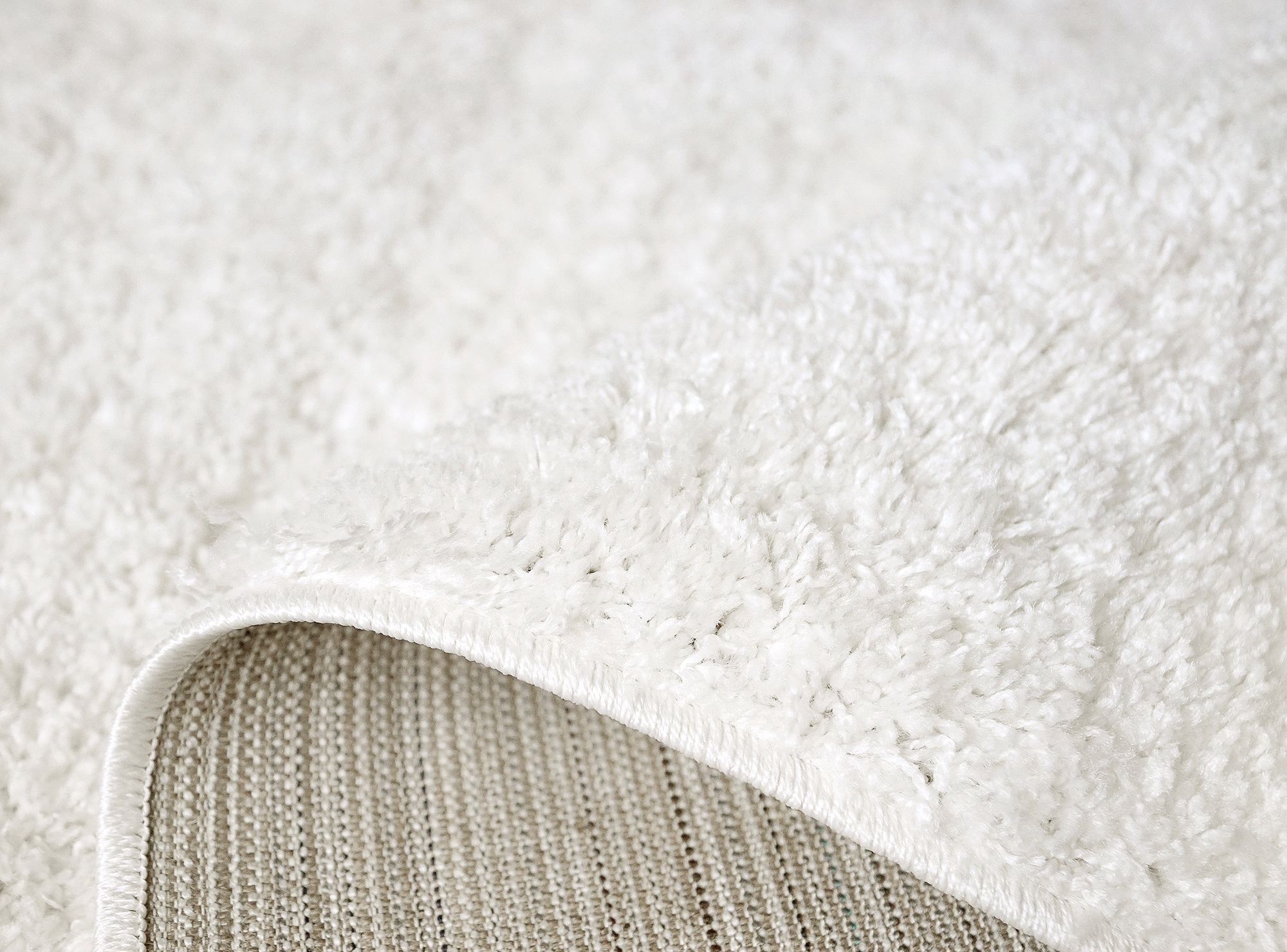 • Valkoinen, hapsullinen, korkeanukkainen Sofi-käytävämatto.
